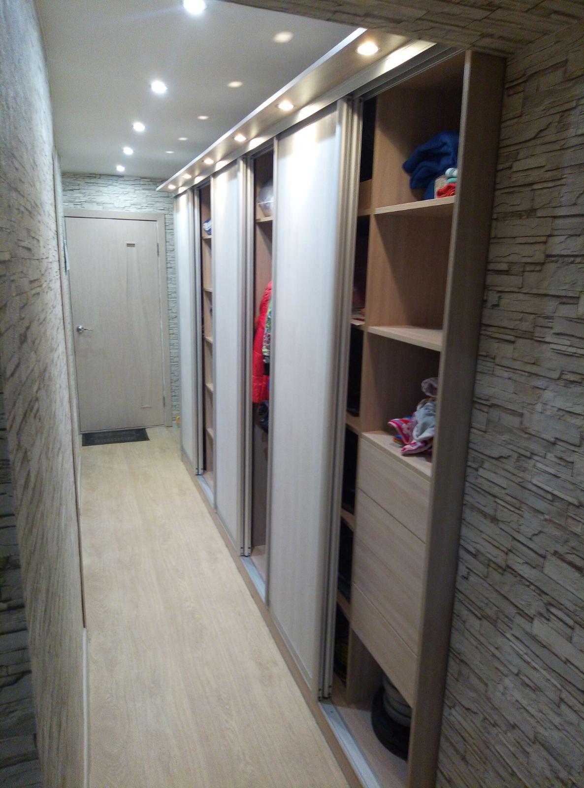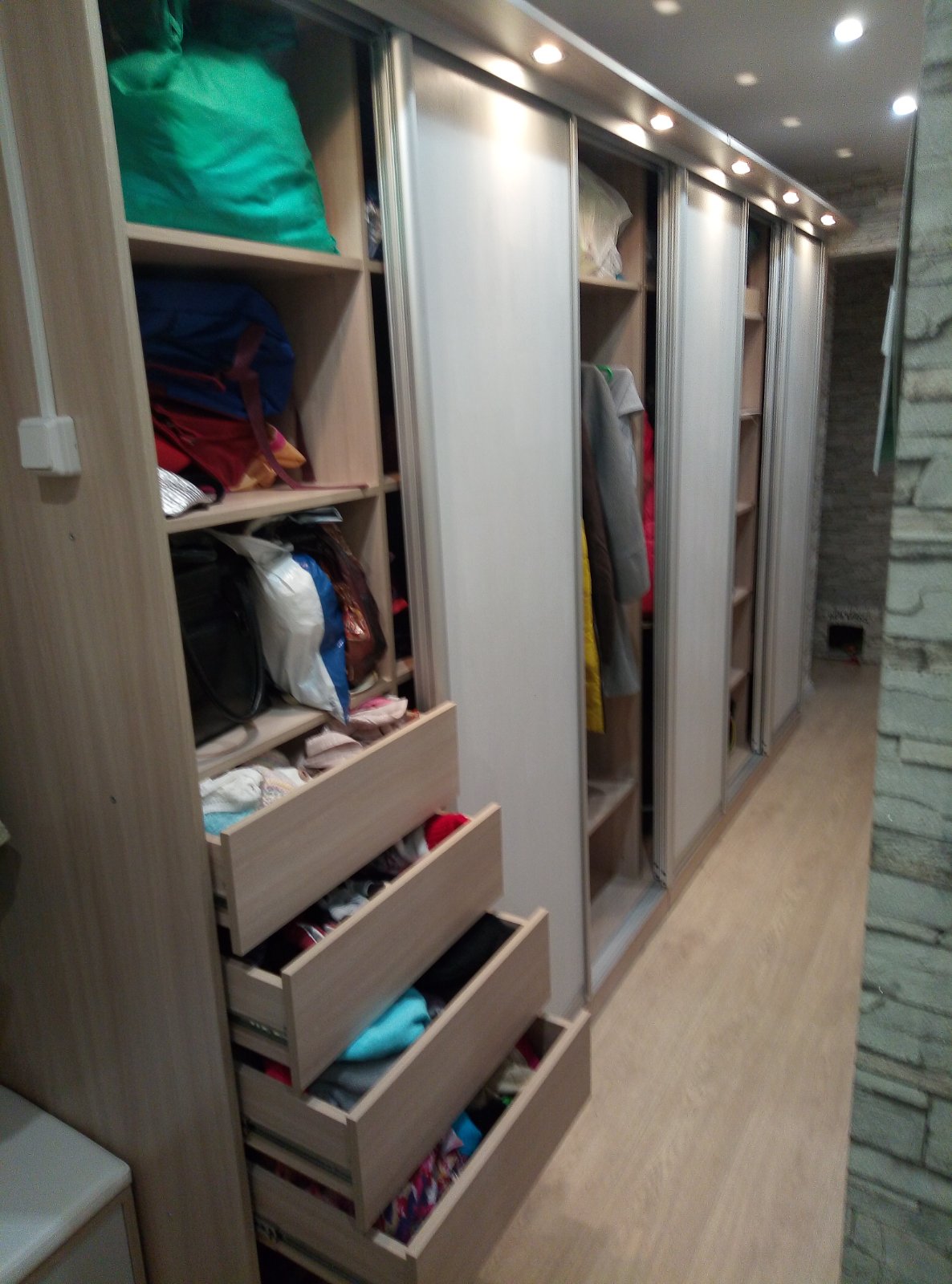 Заказал гардеробную по своим размерам, с подсветкой. По телефону все до мелочей распросили, оформили заказ. Немного затянули с изготовлением, но зато сделали хорошую скидку (да я и не торопился особо). Собирал сам, не спеша, за 4 дня. Все встало как надо, единственное только с дверями немного помучился, ролики заедало в двери. Немного отогнув дверной каркас, ролики стали свободно ходить и пружинить. Качеством доволен. Спасибо за реально хорошую мебель.
