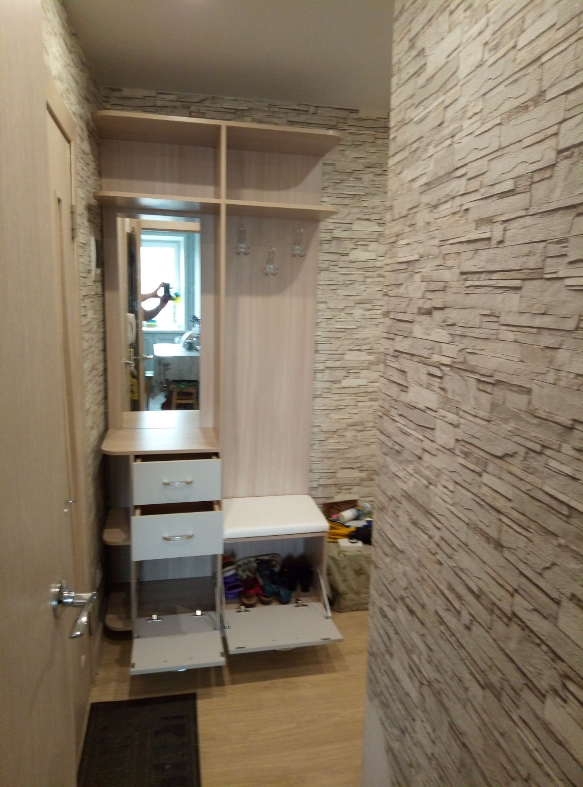 Подобрал размеры, идеально вписалась в прихожую, и обувь вся влезает, и барахло всякое в верхний отсек умещается и даже разетка на стене не перекрывается, т.к. указал нужную высоту.Все идеально, тумба отличная.