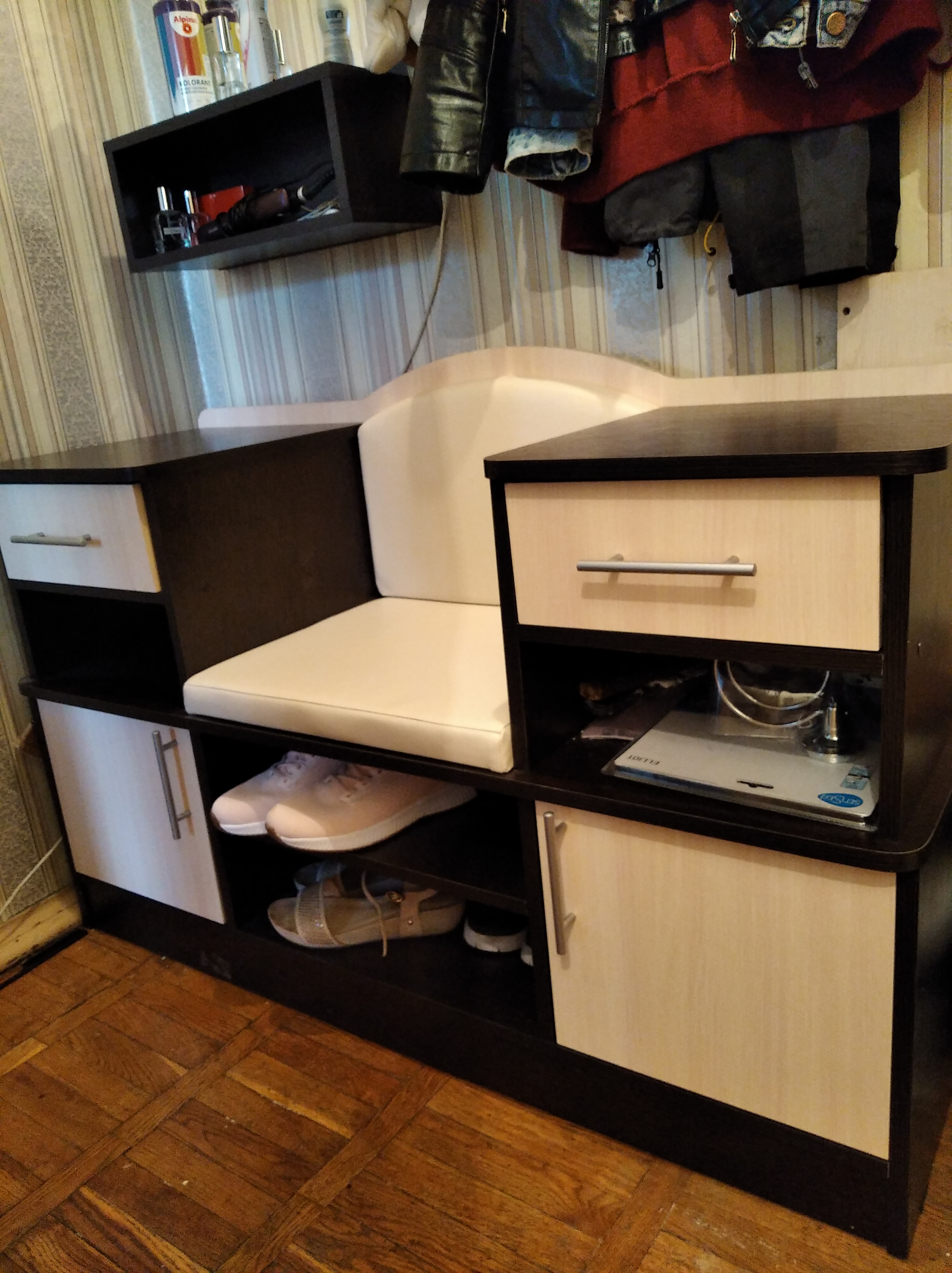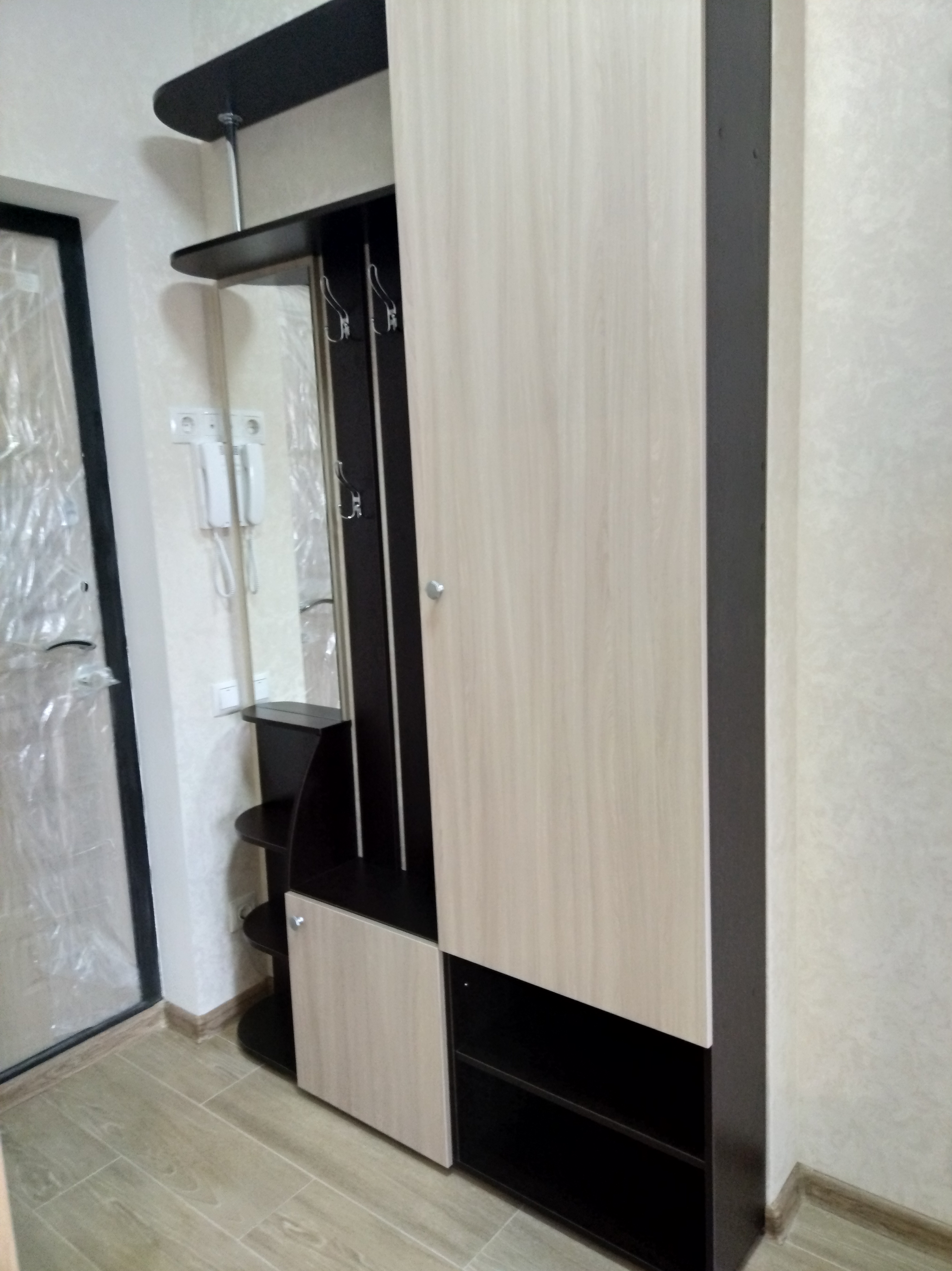 В наш узкий коридор было невозможно что-то подобрать. Оставался вариант просто повесить на стену крючки для одежды. Однако после долгих поисков нашли прихожую Александрия 4 BMS (глубина 24 см), которую произвели для нас по индивидуальным параметрам. Качество очень обрадовало, брака не было. При сборке все детали и отверстия аккуратно подходили друг к другу – мы ожидали, что будет хуже. За такую стоимость прихожую с необходимыми нам размерами у других производителей мы найти не смогли.